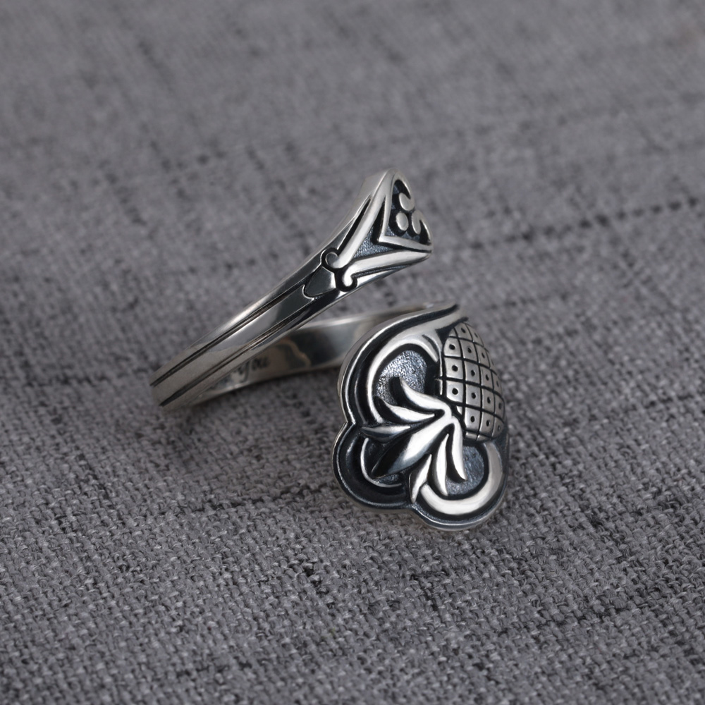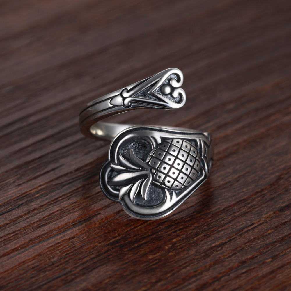 スプーンリングにピッタリと配置されたキュートなシルバーパイナップル。パイナップル柄のクラシックなレトロ風スプーンリングで、特別な気持ちに溢れています。指に美しく巻き付けられたこのパイナップルリングは、歓迎の気持ちと元気を表現しています。だから、ためらうのをやめて、名前をカスタマイズして、あなたの個性を示すユニークなネックレスにしてください!